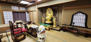 本堂内修繕のため 阿弥陀本尊様を客殿2階へ安置しています